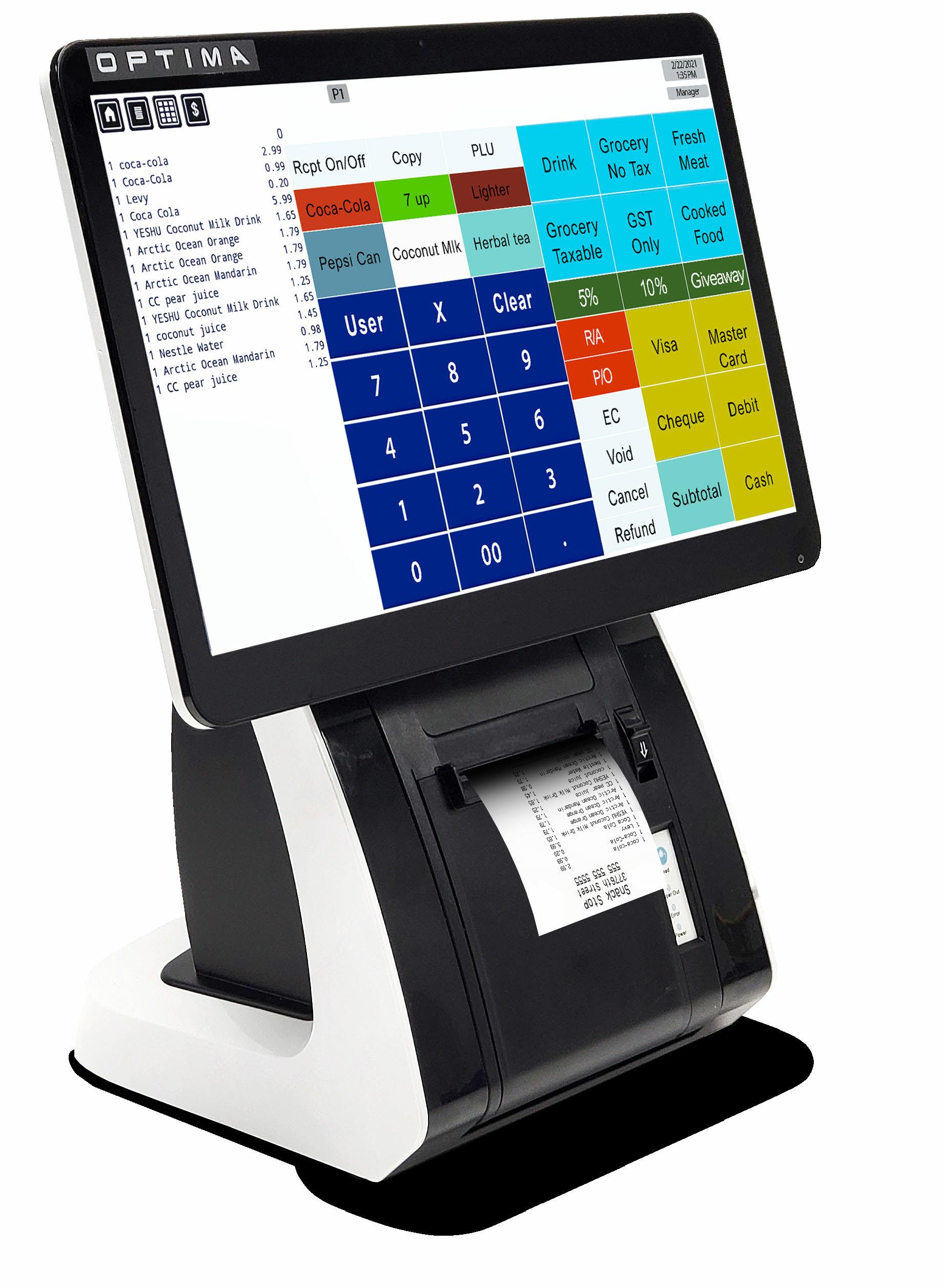 Optima's APOS-05 Series® is integrated with everything to meet multiple commercial and hospitality needs including a 15.6” Touch Screen, 10.1” Customer display, Printer, Magnetic card, RFID card, WCDMA/LTE, Bluetooth, & WIFI. This complete system provides you with a smooth user experience ensuring your sales operations are quick and easy!